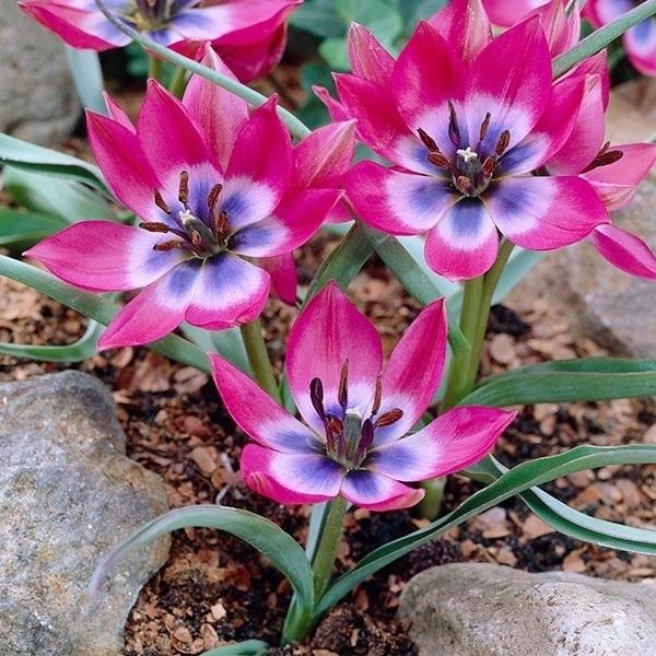チューリップ 原種系-赤紫色の星形の花が咲く原種系チューリップ 規格・数量 球根・1袋 (5球) 種類・系統 チューリップ・原種系 (M) お届け時期 9月中旬〜12月上旬 開花時期 4月上旬原種系チューリップの一番の嬉しさは 植えっぱなしOK おまけに 年々花数増えていく なんというおりこうさん! ! 植え付けは秋 10-12月 花期は3月早咲きタイプ(花丈も小ぶり10cmくらい) 4月咲きタイプ (花丈はー40cmくらい) いずれも 普通の